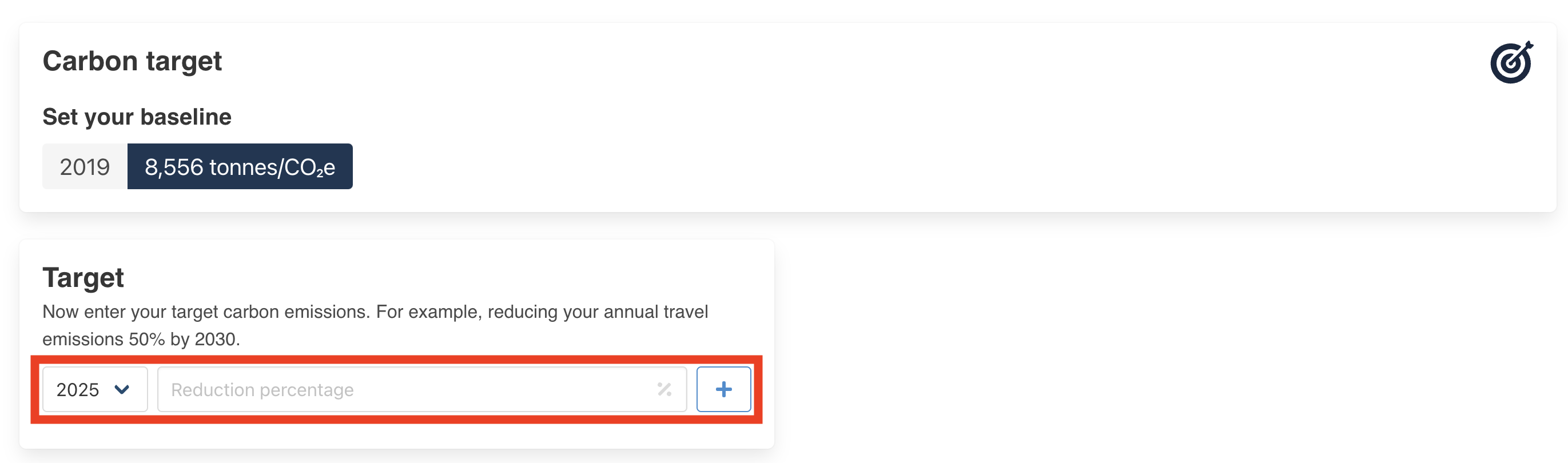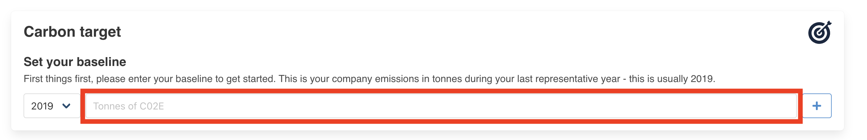Next type in this baseline emission into the input in the Carbon target page and click the “+” button to confirm your selection, as shown below.