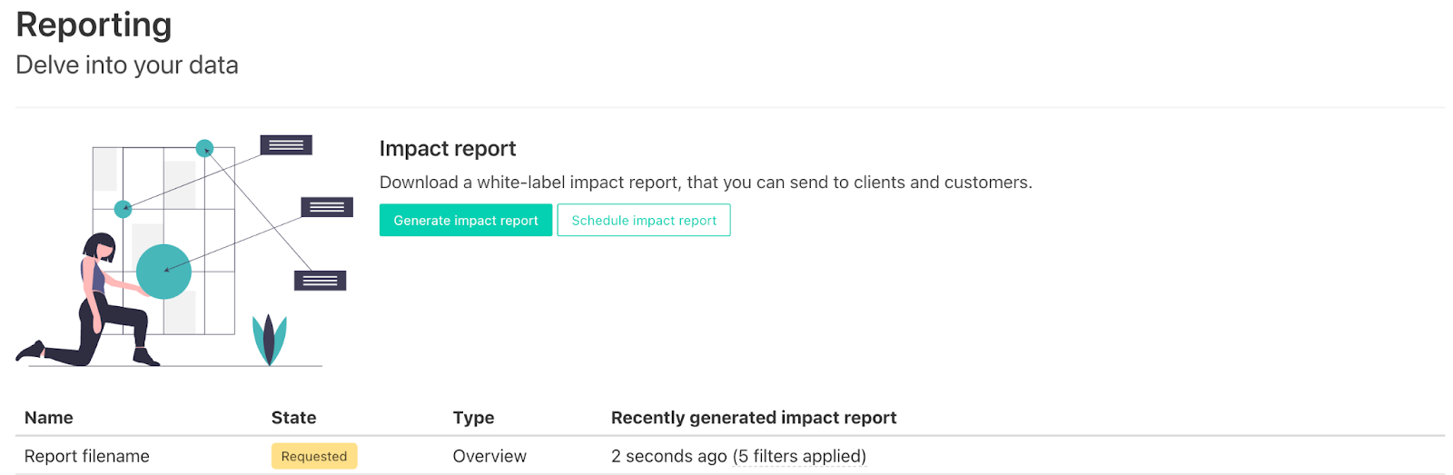 On the reporting page click the “Generate impact report” button and a pop up form will appear.
