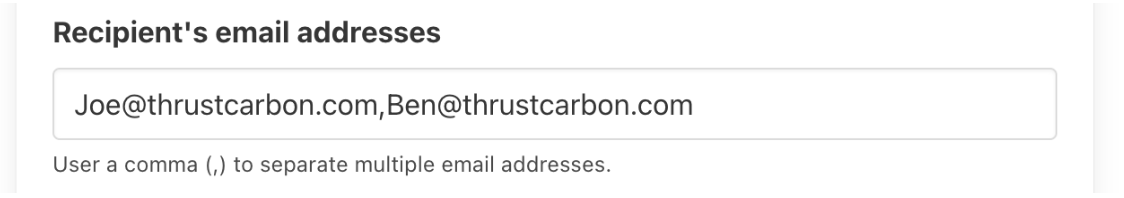 Recipients will be notified that they will receive reports from Thrust Carbon and given your name and email to contact if they have any questions about the report.