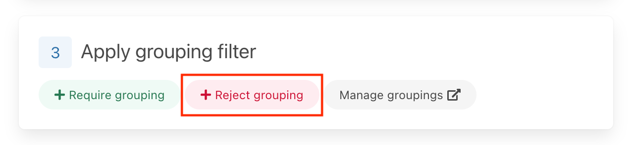If you do not want some groupings included in your report click on the red “+ Reject grouping” button and follow the same steps for the required grouping for the grouping you want to be rejected in the report.