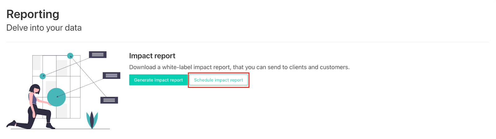 To set this up first click on the “schedule impact report” button on the reporting page of your instance.