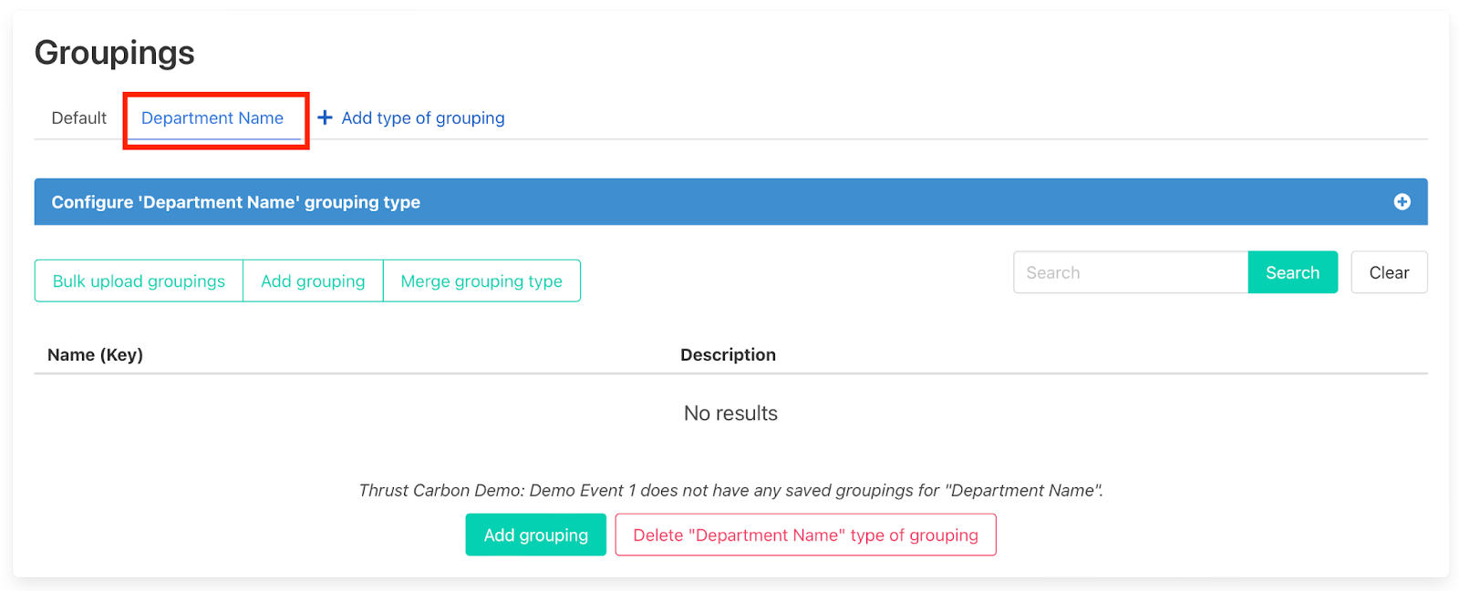 Your new grouping will be visible in the groupings tab under “Department name” as shown below.