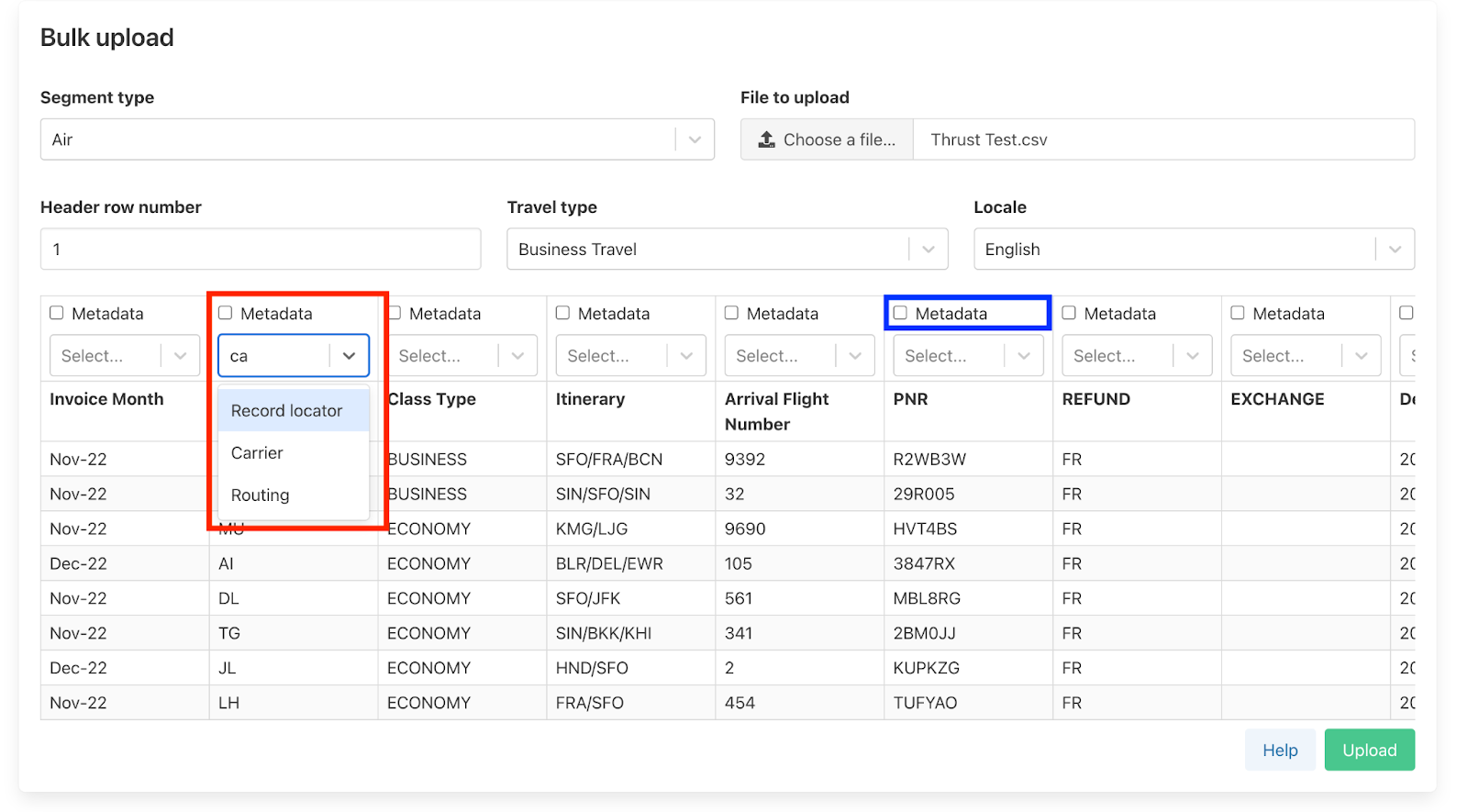 Storing metadata fields can be helpful to make data from the Thrust Carbon intelligence platform interoperable with data from other sources, for example your TMC’s post-trip reporting system..