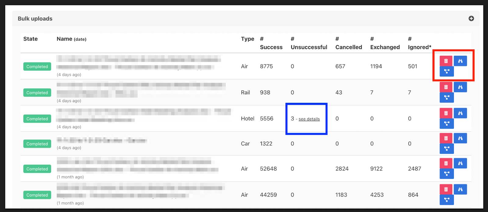 Successful. This shows the total number of segments that were able to be uploaded to the Calculator. Note that it does not represent the number of segments that are contributing towards your emissions - some of these successful segments may be deleted if your upload includes refunds and exchanges and a segment is flagged as an original booking with the unique identifier.