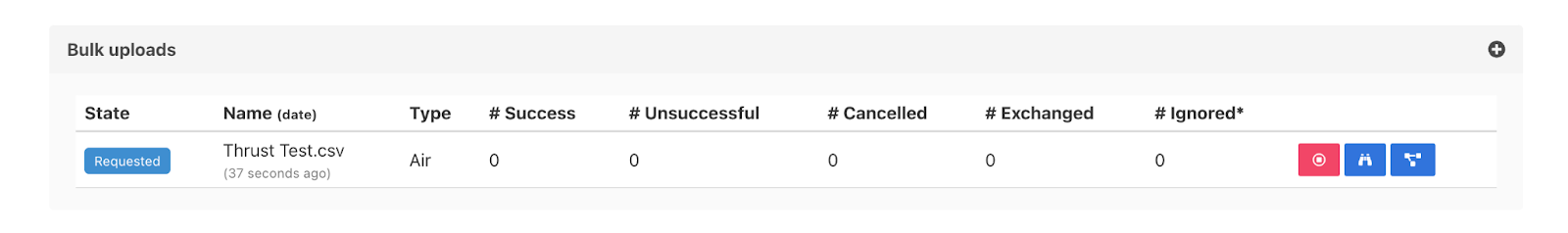 As you can see below there are 6 columns headings that give you information about the bulk upload.