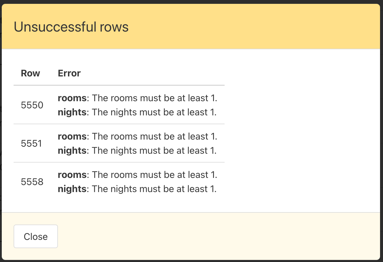 If any errors have occurred with your upload, click on the “see details” button to better understand what has caused the error. An example error message is shown below.