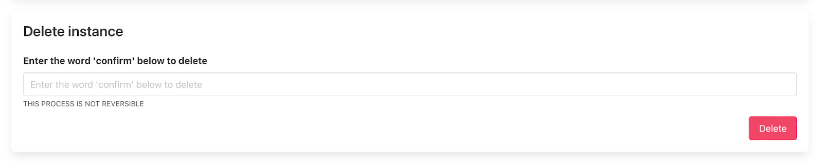Note that deleting an instance is irreversible. If you do however need to delete an instance navigate to the settings by clicking on the “settings” button on the top right of the overview page.