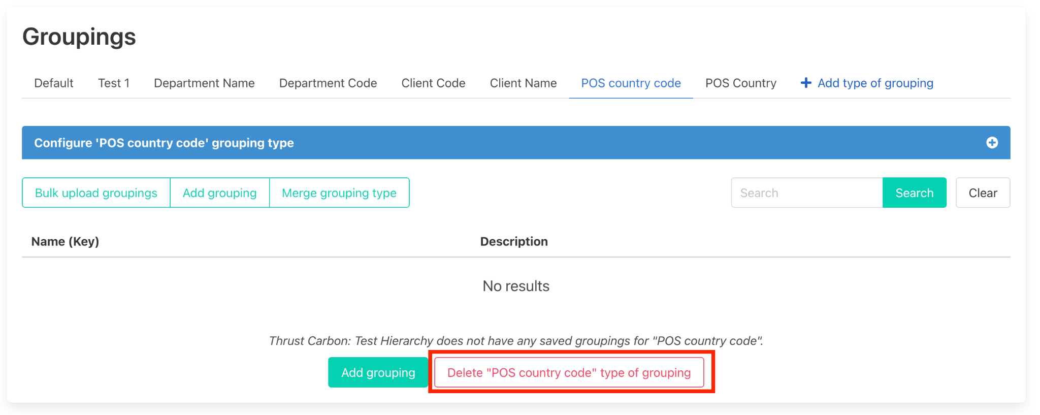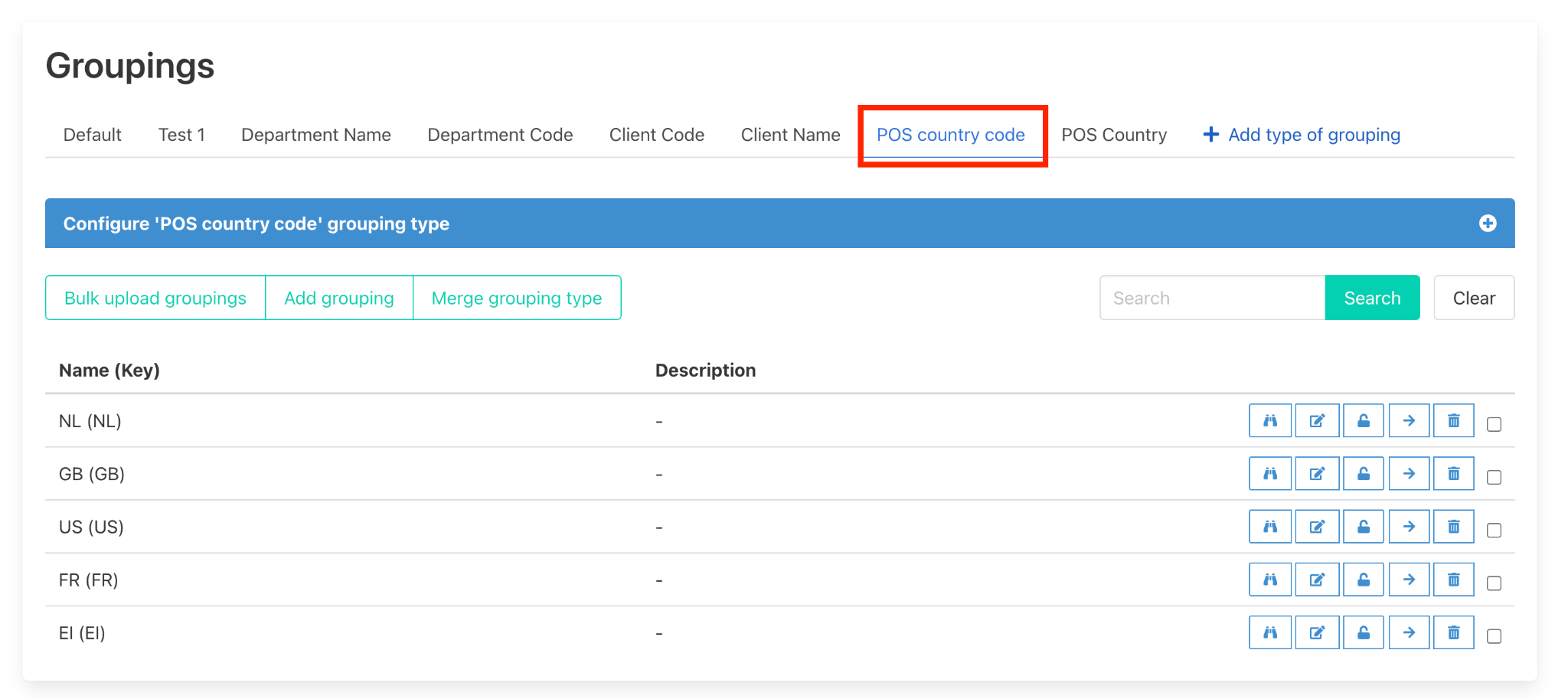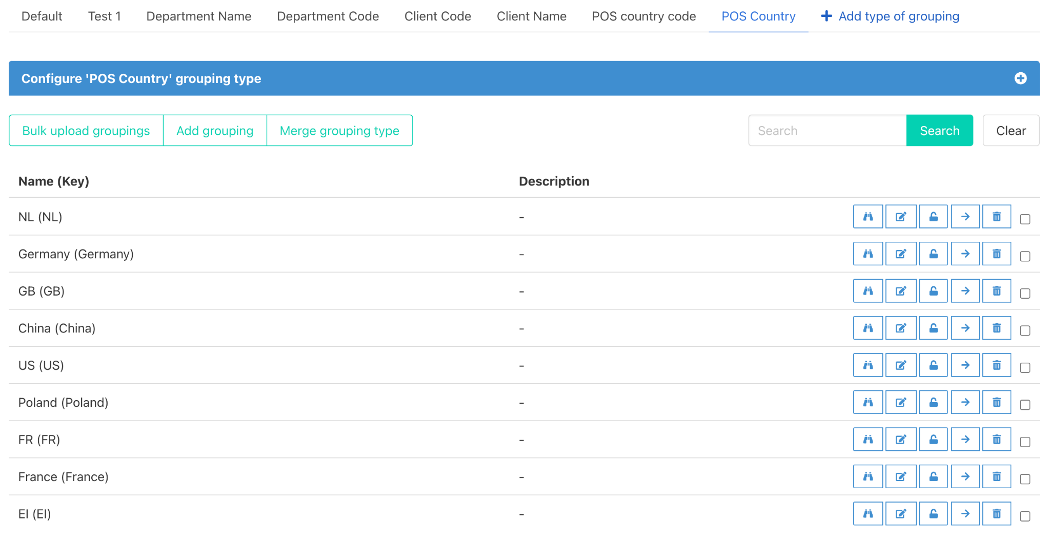 For this example we can see below that all the groupings that were within POS country code have now been moved into POS country. So we know that it is now ok to delete the empty grouping type.