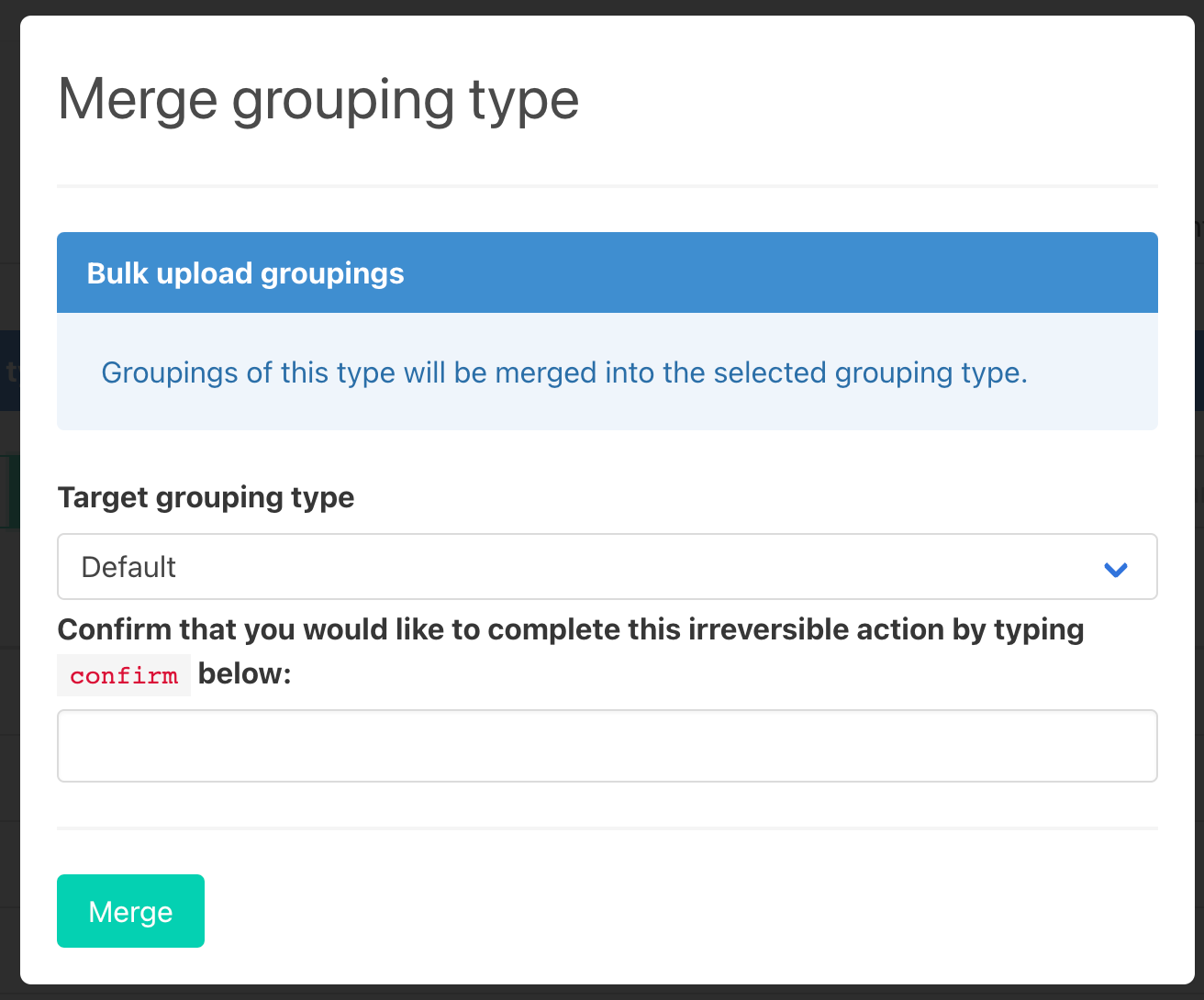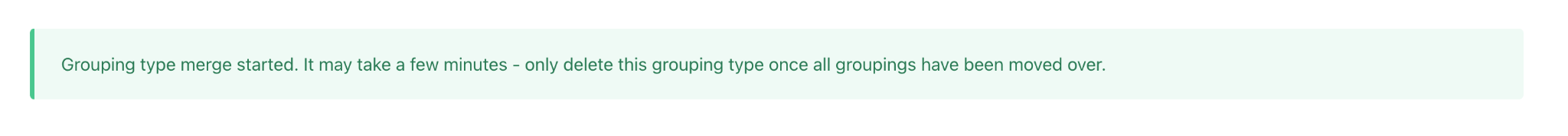 The use case for this process could be if you initially created additional grouping types which in hindsight are not needed or should in fact be combined with another grouping type based on the data uploaded and the attached groupings. For example, if you created 2 groupings types of “POS country” and “POS country code” but on uploading all the data you realised that segments only contain one or the other grouping type. In that scenario, you wish to merge the grouping types together to ensure that all POS values are captured.