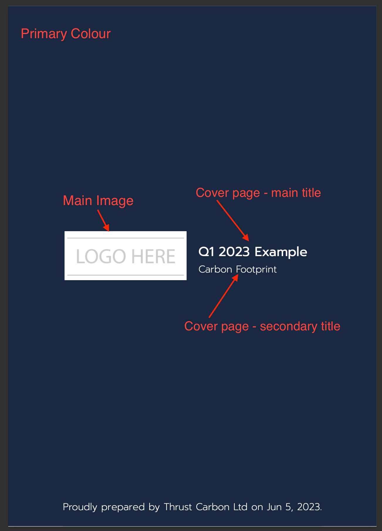 The Thrust Calculator allows you to white label your Impact Reports. This allows you to apply your company's logo and branding colours to your Carbon Emission reports.