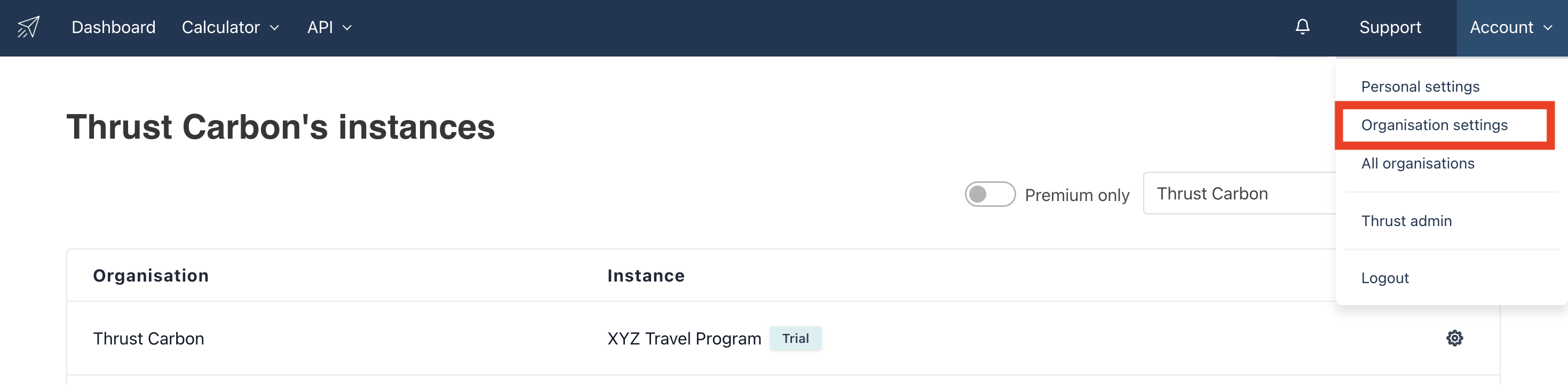 1. Once you've logged in, go to your Organisation settings (top right of the page).