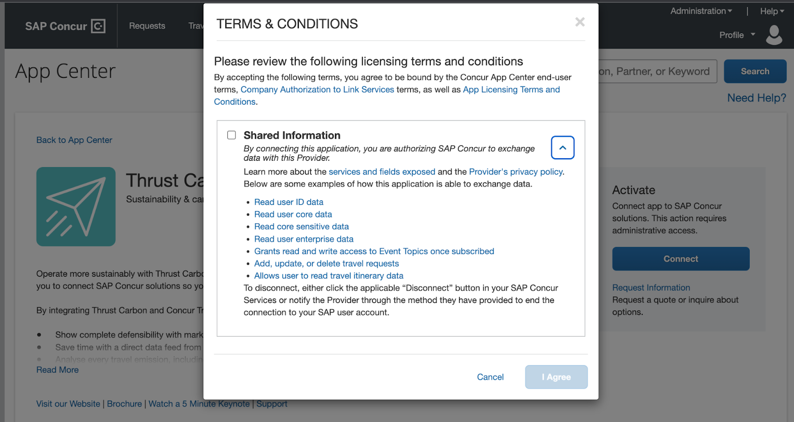 Thrust Carbon Guide: How to connect to Thrust Carbon via SAP Concur App Centre