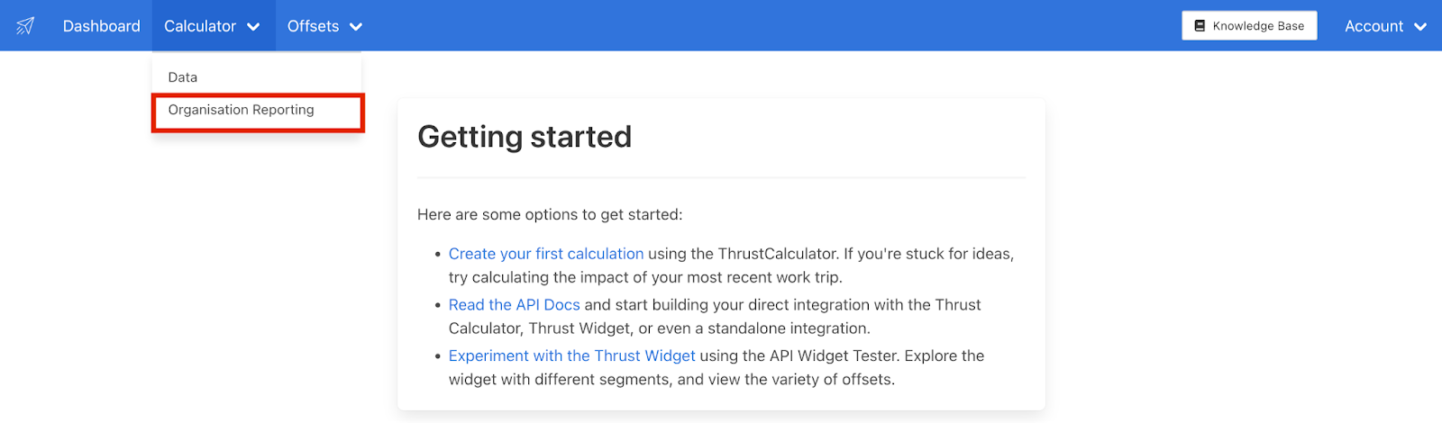To access Organisation Reporting simply log into the Thrust Calculator and click on the “Calculator” tab at the top of the page.