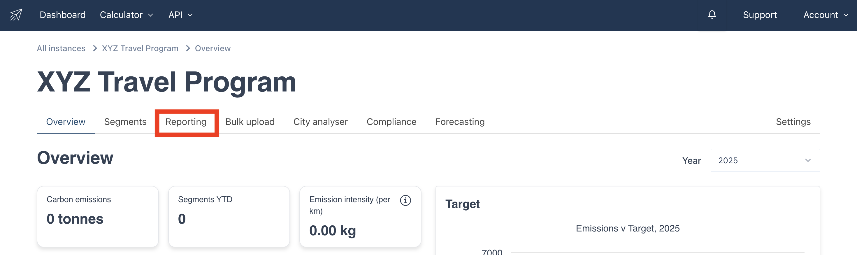 Navigate to the instance you want to generate the report in then click on the “Reporting” tab as shown below.