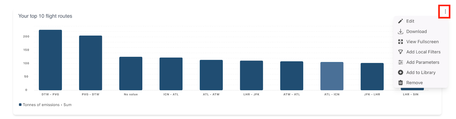 It is possible to edit any chart on the dashboard, for example if you wish to see additional filtering and formatting options. Click on the 3 dots to the right hand side of the chart you wish to edit. You can also download the chart too.
