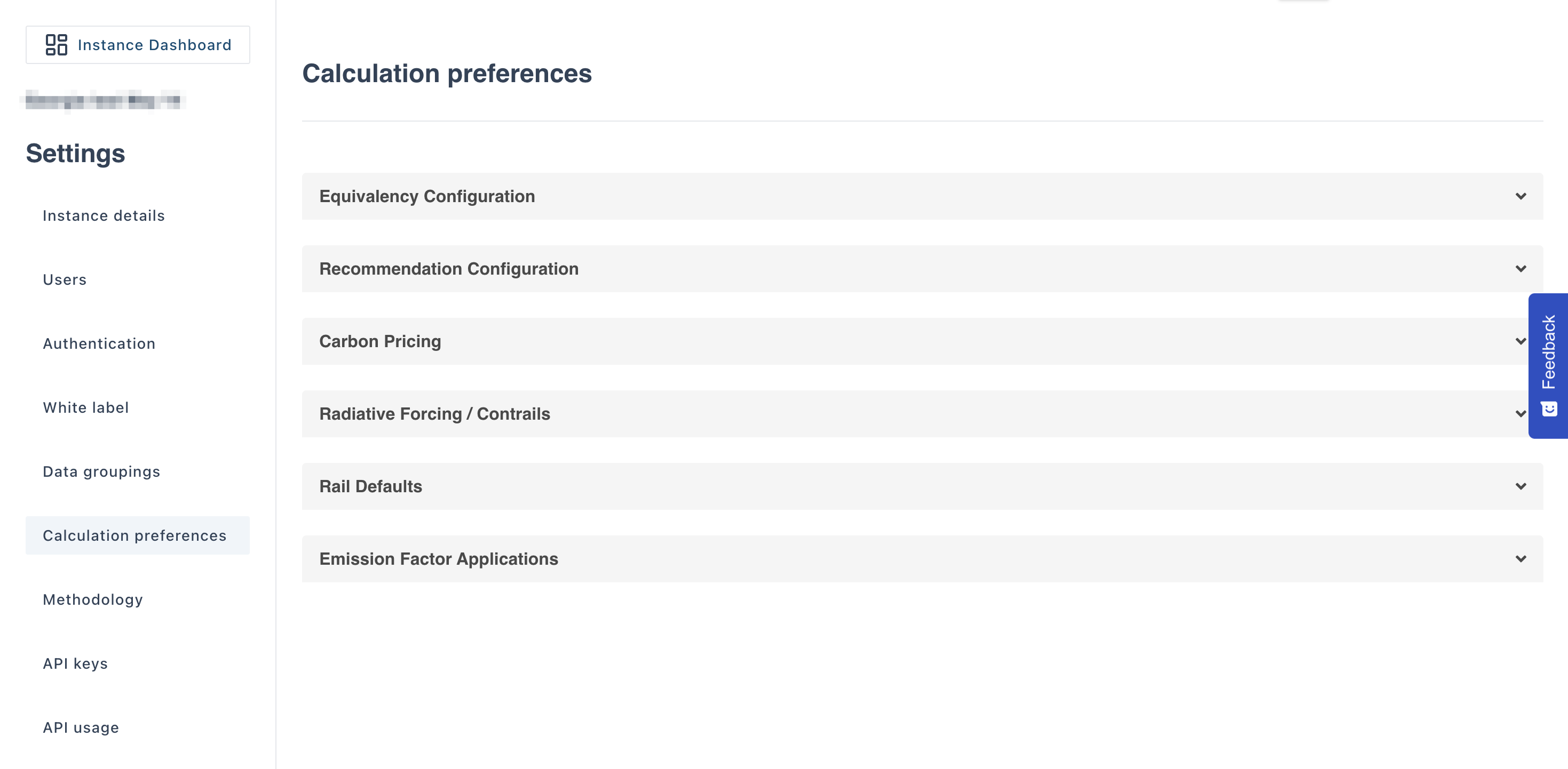 Note: Changes to the methodology settings in your instance will only apply to future calculations. If there is already data populated in your instance you may wish to recalculate historic emissions, please contact support@thrustcarbon.com