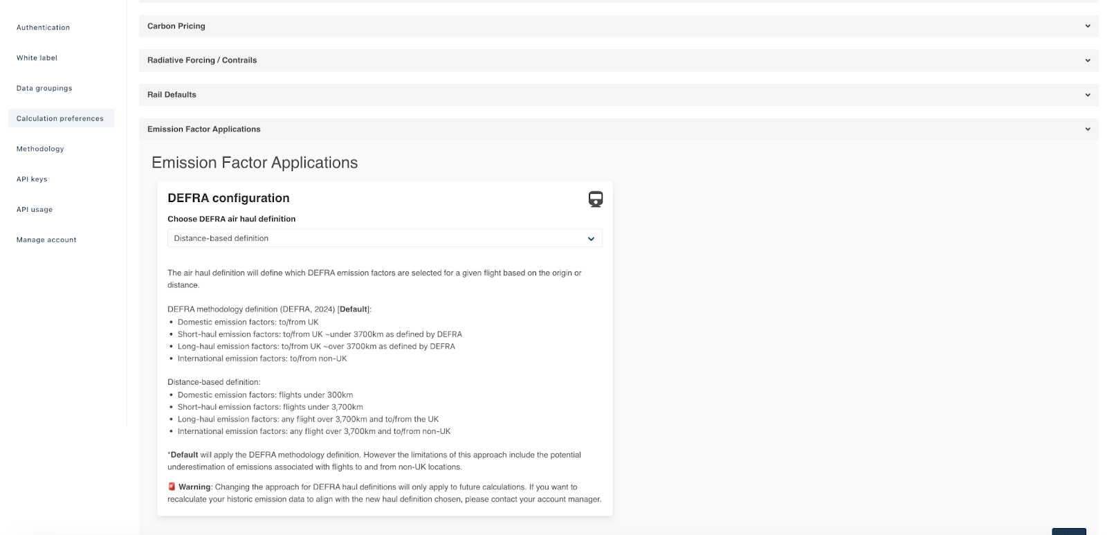 However DEFRA emission factors, for example, are released in June of any given year, therefore in the above example the 2024 factor would not be available in April and the flight calculation would have used the 2023 factor. However, if calculated in September 2024 would be available.