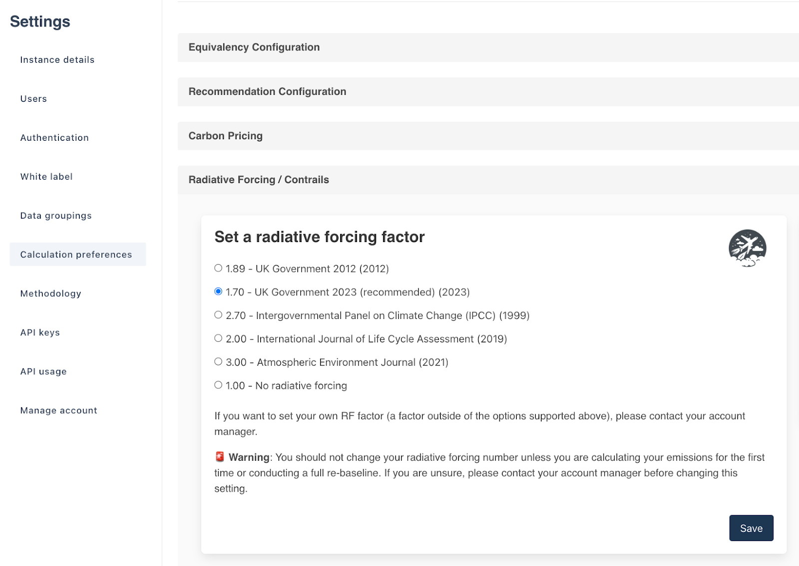 Radiative forcing settings